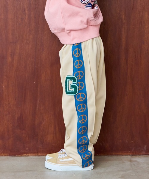 サガラワッペン×レトロなサイドライン 主役級トラックパンツ ■デザイン ポップな「R」や「G」のサガラ刺繍ワッペンを大胆に配置し、アイキャッチ抜群のデザイン。 サイドラインにはフラワーやピースマークなど、70'sを彷彿させるレトロモチーフを採用。 個性を引き立てつつ、主役級の存在感を放つ一本です。 ■スタイリング Tシャツやスウェットと合わせたカジュアルコーデはもちろん、 シンプルなトップスを合わせることでボトムスのデザインが主役に。 同素材のトラックジャケットとセットアップでも着用いただけます。 ■生地感 柔らかく伸縮性のあるジャージ素材 肌触りが滑らかで着心地快適。 動きやすくデイリー使いに最適です。 ++++++++++++++++++++++++ 透け感:なし 伸縮:あり 厚み:普通 ++++++++++++++++++++++++ ※ネームタグ付き ※ウエストゴム(ゴム穴なし) ※サイドポケット1つあり ■セットアップアイテム ・サガラワッペントラックジャケット:0000752014 ■リンクコーデアイテム おとなサイズ ・サガラワッペントラックパンツ:0000152014 ※モデルが着用している画像は、照明や日光などの撮影時の環境により実物と異なる色味になる場合がございます。 商品単体の平置き画像を実物に近いお色味になるよう努めておりますので、お色味のご確認は平置き画像をご参照くださいませ。 ※お使いのモニター環境によっても実物のお色味と異なって見える場合がございます。予めご理解の程よろしくお願いいたします。 ハートマークをポチッ! 気になる商品はお気に入り登録をお忘れなく! 商品のお気に入り登録をすると... [再入荷][残り1点][セール情報]を受け取れます。 MARKEY'Sをお気に入り登録すると... [新商品][再入荷]の情報をいち早く受け取れます。