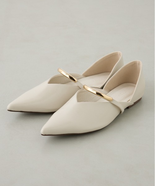 ■ルクスメタルポインテッドトゥパンプス ■ポイントシャープなVカットと艶感のあるメタリック素材が、足元にモードな抜け感をプラスするフラットパンプス。甲をまたぐアーチ状のメタルストラップが、ジュエリーのような存在感を放ち、スタイリングのアクセントに。■ディテール足を美しく見せてくれるVカットデザインと、ポイントになるメタルストラップが目を引く一足。エッジの効いたデザインながらも、フラットソールで歩きやすく、普段使いにも取り入れやすいのが魅力です。足元に視線を集める主役アイテムとして、シーズンレスで活躍します。■スタイリングシンプルなパンツスタイルやワンピースに合わせるだけで、ぐっとこなれた雰囲気に。■素材甲の金具は、さまざまな甲の形にフィットするよう、端を固定していません。また、端が浮くことで足に刺さりにくくなっていますが、何かに引っかかることもあるため、ご注意ください。[注意事項]※画像の商品はサンプルです。実際の商品と仕様、加工が若干異なる場合があります。※画像の商品は光の照射や角度、お使いのモニター環境により、実物と色味が異なる場合がございます。※着用、お取り扱いの際は、アテンションタグをご確認ください。[お気に入り登録のおすすめ]■商品のお気に入り登録お気に入りアイテムの再入荷・在庫1点などの通知を受け取ることができます。■ブランドのお気に入り登録新作アイテムの入荷や人気アイテムの再入荷、おすすめトピックスなど、いち早くブランドの情報を受け取ることができます。AUTUMN & WINTER ( 秋服 / 冬服 )靴