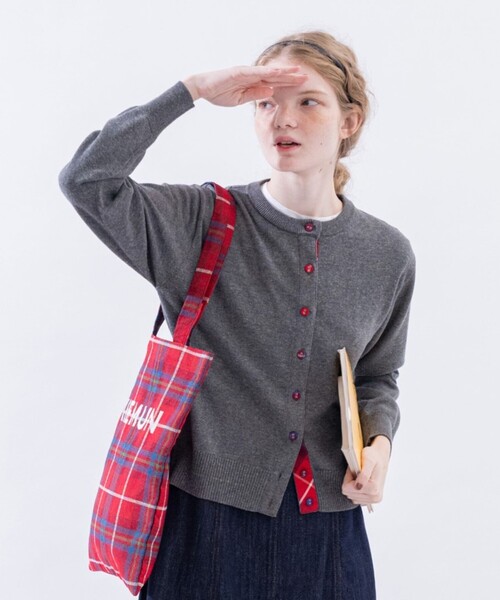 タータンチェック柄くるみボタンカーディガン/Afternoon Tea Original Tartans