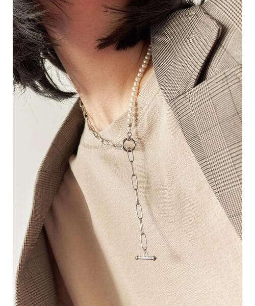 パール調とメタルチェーンを組み合わせたミックスネックレス。 クラシックな印象とモード感をほどよく取り入れ、コーディネートのアクセントにぴったりです。 Tシャツやスウェットに合わせてカジュアルに、シャツやワンピースと合わせて洗練された雰囲気をプラスするのもおすすめ。 ※商品画像は、撮影環境やお客様のご利用のPC・スマートフォンのモニター環境などにより実物と色味に差異がある場合がございます。 ★《お気に入り登録》でお得な情報をGET★ ① 商品ページ内のハートマークをクリック! ② 以下通知が受け取れます! 「再入荷」「ラスト1点」「特別セール」etc.. \ブランド、ショップのお気に入りも是非!/