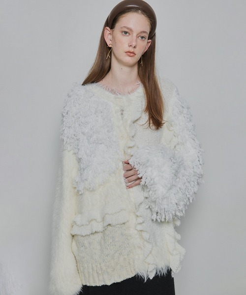 【TEN by LA BELLE ETUDE】オートクチュールのような繊細なニットライン。"ニッティングパターンシリーズ"フリルやループなど、さまざまな編み方をほどこしたデコラティブで華やかなニットカーディガン 。●design4素材の糸を使ったミッドカーディガン。素材ごとに編み方も異なり(ループ編み、ジャガード、アゼフリル、天竺リブ)さまざまな編み方と糸で表現したこだわりのあるニット。異なるテクスチャーが重なり合うことで、奥行きのあるデザインに。通常、糸と編み方を変えると境目に縫い目がはいることが多いもののゲージや糸調子を調節しているため、フリル以外は編み続きで、境目のないニットになっています。やや長めなミドルカーディガンでヒップまわりをカバーしてくれゆったりめなサイズ感なので中に着込むこともでき、ライトアウターとしても活躍間違いなし◎●fabric-●styleカジュアルにもフェミニンな気分にもぴったりはまるデザイン。ラフなアイテムとのスタイルや、ライトな素材のワンピースなどと合わせるのも◎●wearing sceneピクニック,レジャー,ドライブ,フェス,イベント,お出かけ,女子会,ランチ,記念日●colorホワイト,ブラック,ブルー●sizeFREE●seriesET00000180manyニッティングパターンマフラー・・・・・・・・・・・・厚み:厚手伸縮性:あり肌触り:普通裏地:なし透け感:なし・・・・・・・・・・・・■商品のお気に入り登録再入荷の通知や、ラスト1点の通知、セールの通知がいち早く届きます!■ブランドのお気に入り登録新商品や再入荷など、いち早くブランドのお得情報が届きます!