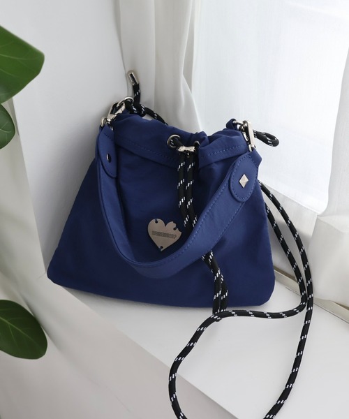 【2wayショルダー巾着バッグ】■素材■マットでサラッとした質感のナイロン生地で仕上げました。ポリウレタンベースで柔らかい質感になっているため物の出し入れもしやすくなっております。■ディテール■フロント中央には、Rememberオリジナルのハート型の真鍮パーツをつけました。ボディ共地の短い持ち手と斜めがけ可能な長めのコードストラップが付いており、気分によって付け替えてハンドとショルダーの2wayでお使いいただけます。 ※屋外での撮影画像や光の当たり具合で色味が異なって見える場合がございます。 商品の色味はスタジオでの詳細画像をご参照下さい。 - Remember -一度見たら忘れられない。韓国ストリートに個性的なデザインを組み合わせたユニセックスブランド。▼商品のお気に入り登録完売カラーの再入荷通知や、ラスト1点、セールの通知をお知らせ致します。▼ブランドのお気に入り登録新商品や再入荷など、いち早くブランドの情報を受け取ることができます。