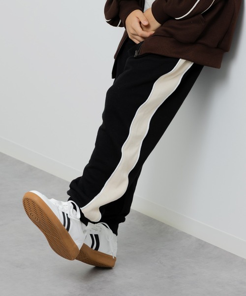 たぽっとしたシルエットがかっこいい!裏毛の脇ラインパンツ!脇のラインがスポーティーなアクセントになっていて、ゆったりとしたシルエットがアクティブなキッズにぴったり。 柔らかい裏毛素材でロングシーズン着用できます。