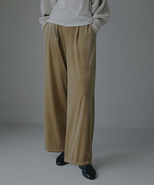 2025 Autumn&Winter Collectionベロア2WAYパンツ裾がドロスト仕様のシルエットが変えられるベロアパンツ。フロントにタックを入れることでウエストまわりをカバーし、スッキリとしたシルエット。なめらかな表情感と、主張しすぎない光沢のベロア素材です。同素材のVELOUR OVER SHIRTSとのセットアップはもちろん、シャツやカットソーなどに合わせて着ていただけます。レジャーイベントやお子さん連れのお出かけなどにもぴったりです。※照明の関係により、実際よりも色味が違って見える場合がございます。またパソコン・スマートフォンなどの環境により、若干製品と画像のカラーが異なる場合もございますので、予めご了承ください。商品の色味は、商品拡大画像をご参照下さい。