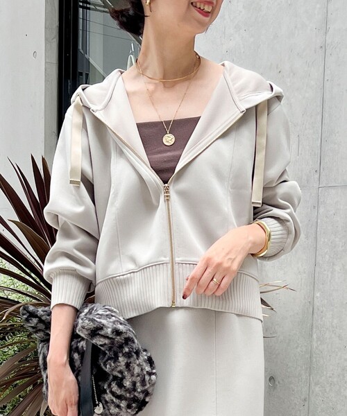 ◇25AW◇ MICO COULIER 軽い着心地が魅力 ロングシーズン使える大人パーカー ◆Point ・定番人気の軽量ボンディングシリーズにジップアップタイプのパーカーが登場! ・カジュアルなアイテムながら女性らしく着まわせる1枚 ・軽量なボンディング素材で快適な着心地 ・きれい見えする素材でカジュアルになり過ぎず幅広いコーデに取り入れやすい◎ ・素材を活かした立体的なシルエットが抜け感のあるニュアンスを作り出します ・フード先にはグログランテープを使用、袖口と裾のリブ使いとラウンドした裾でこなれ感のあるデザイン ・すっきり見えるようポケットはスラッシュタイプで目立ちにくい仕様 ・短めの着丈でワンピースやスカートとも相性がよく、旬なバランスの着こなしが叶います ・お揃いのタイトスカートとセットアップで着るのもおすすめ ・大人カジュアルに決まる、ロングシーズン楽しめるパーカーです <同生地シリーズ> ・5-0819-5-06-001《セットアップ対応》軽量ボンディング切替スカート ・5-0819-5-03-004《セットアップ対応》軽量ボンディングドロップスリーブプルオーバーカットソー ---------------------------------------------------------- 透け感:なし 裏地:なし 伸縮性:あり 光沢感:なし 洗濯:手洗い可 ---------------------------------------------------------- 気になる商品は、お気に入り登録がオススメです! クーポン情報、入荷情報が通知されるようになります ---------------------------------------------------------- ●お取扱い上のご注意● 末永くご愛用頂くために、アテンションタグを必ずご確認の上、着用又はお取り扱い下さい。 ※店頭及び屋外での撮影画像は、光の当たり具合で色味が違って見える場合があります。商品の色味は、スタジオ撮影の画像をご参照下さい。 ※商品画像に関しては出来る限り忠実に表示出来るよう努めておりますが、お客様がご利用のモニターの設定及び特性により、実際の商品と比較し色味に若干の誤差が生じる場合があります。 ※製品洗い加工の商品は、多少の歪み、シワなどが見られたり、風合いやサイズ等が1枚1枚異なります。汗や雨等で濡れた時や、摩擦により色落ちし、他の衣料を汚すことがありますので(特に濃色のもの)ご注意ください。