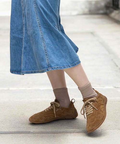 【ASH公式ショップ】 2026年 Spring&Summer COLLECTION フラットソールのローカットスニーカー。 ソールからアッパーまでブラウンに仕上げたシンプルなデザインに、ウエスタンデザインのような刺繍を施したカジュアルでクールな一足。 履き口はゴム仕様になっているため足にフィットし、踵が脱げやすい方も安心してお履きいただけます。 薄底はスマートなデザイン性だけでなく、ソールのかえりが良くアクティブな日にピッタリです。 また、ドライビングのような踵までソールを巻き上げている仕様になっており、大人っぽさもプラス。 デニムやレース素材のボトムスなどでウエスタンスタイルを楽しむのはもちろん、スウェットのジョガーパンツやスカートなどとスポーティーMIXスタイルにもおすすめです。 ■ソール、つま先、かかと部分にはヴィンテージ加工が施されております。 ■天然皮革の為、色むらや軽微な傷等が残っていることがあります。 これらは全て革製品の特性ですので予めご了承下さい。
