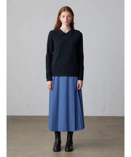リサイクルポリエステルを使用したタックプリーツスカートです。MidiUmiの実績のあるデザインで今季も再入荷アイテムとなっています。梳毛ライクで落ち感のある生地が特徴。フロント面はフラットなデザインなのでシャツをインにしてもウエスト周りがスッキリとした印象です。サイドからバックにかけてゴム使用なので穿きやすいデザイン仕上げ。大きなプリーツが清楚な雰囲気を表現したトラッド感のあるスカートで、落ち着きのある大人の魅力を演出した1枚です。※こちらの商品は「手洗い不可」です。Pointシルエット:スタンダードデザイン:無地ウエスト:ゴムありDetail裏地:なし透け感:なし伸縮性:なし光沢感:なしポケット:なし※商品画像は、光の当たり具合やパソコンなどの閲覧環境により、実際の色味と異なって見える場合がございます。予めご了承ください。※商品の色味の目安は、商品単体の画像をご参照ください。こちらの商品 は MidiUmi にてお取り扱いしております。店舗在庫等については直接店舗にお問い合わせください。