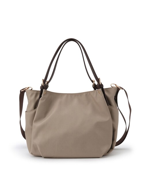 【デザイン】 大好評だった3WAYバッグ! ブラック・ベージュのベーシックカラーに秋映えするローズピンクを加えて再登場です。 軽くて持ちやすく、どんなシーンにもマッチする丁度良い大きさのデザインバッグ。 ショルダー紐は長さの調整ができ、斜め掛けや肩掛けも可能です。 バッグインバッグはポーチとしても、ショルダーを付け2個目のサブバッグとしても使用可能です。 【素材】 程よい張り感のあるナイロン素材です。 光沢感もあり、大人っぽい仕上がりです。 【仕様】 ・ポケット数:内側×6 外側×3 ※照明の関係により、実際よりも色味が違って見える場合があります。また、パソコン・スマートフォンなどの環境により、若干製品と画像のカラーが異なる場合もございます。 店舗へのお問い合わせ商品番号:101-04912 ●製品寸法: 00:高さ21cm 幅(上部)34cm 幅(下部)27cm マチ18cm 持ち手上がり対応サイズ19~23cm 付属ショルダー対応サイズ64.5~125cm 付属ポーチH20.5cm 付属ポーチW26.5cm 付属ポーチD8cm 備考:重量:約540g(サンプルサイズ)