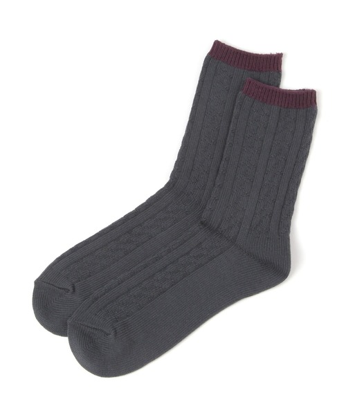 やわらかい風合いのケーブル編みが上品な印象のソックス。 落ち着いた色味で、幅広いスタイリングに合わせやすいアイテムです。