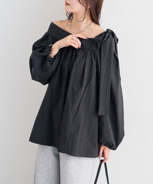 リボンが目を惹く♡程よい肌魅せも叶うブラウスが登場!●デザイン・肩部分のリボンが目を惹く可愛らしいアイテム♡オフショルでデコルテラインの程よい肌魅せも叶うアイテムです。・1枚で着映えするブラウスなのでシンプルなボトムスに合わせるだけでコーディネートが完成します!・袖口は程よいパフデザインで可愛さをプラスしました◎ゴム仕様になっているので締め付け感がなくストレスフリーです。・さらっとしている素材でシワにもなりにくいです。●スタイリング・ミニ丈のボトムスと合わせて可愛らしいフェミニンなコーディネートに♡デートやお出かけにピッタリなアイテムです。・デニムと合わせてカジュアルダウンさせたコーディネートも。甘辛コーデが完成します!・スラックスパンツとの相性も◎きれいめなコーディネートになります。●おすすめスタイリングアイテム・【スタッフ所持率No.1】ウェーブデニム・シンプルショートパンツ・レース切替デニム●スタッフ着用コメント・身長154㎝ 骨格ウェーブ華やかアイテムなので1枚で着映えするブラウスです!デート服におすすめなアイテムだと思います◎首回りがオフショルなのでデコルテがしっかり見えてすっきりして見えました。・身長163㎝ 骨格ナチュラル肩のリボンが可愛らしく主張しすぎないデザインなので大人っぽくも着れるブラウスです◎袖口もパフになっているのも可愛いポイントです!●素材さらっとしていて肌触りが良い生地です。-----------------------------------------------------洗濯:不可アイロン:低温120℃まで スチームなし(あて布使用)タンブル乾燥:不可裏地:なし伸縮性:なし光沢感:なし生地の厚さ:普通------------------------------------------------------商品のお気に入り登録➡ お気に入りアイテムの値下げ・再入荷・在庫1点などの通知を受け取ることができます。ブランドのお気に入り登録➡ 新商品や再入荷、セール、クーポン配布などお得な情報を受け取ることができます。※サイト上のカラー名と、お届け商品に記載されているカラー名が異なる場合がございます。※商品の色味は、撮影場所や光のあたり具合などにより色味が違って見える場合が御座います 。 また、お客様のお使いのPCのモニター環境などにより色味が違って見える場合が御座います。予めご了承の上ご注文下さい。※ご注文いただいた予約商品のお届け時期の確認は、注文履歴ページより行えます。------------------------------------------------------