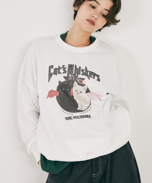 スタイリングに抜け感を出すポップなプリントスウェット ■デザイン/素材 コットン混で肌触りの良い裏毛スウェットにポップなアニマルプリントを施したプルオーバースウェット。 ホワイトには天使と悪魔デザインの猫をプリントして、トレンド感のあるロック調に仕上げました。 グレーにはブルーのワンカラーで仕上げた横並びの犬をプリントし、毛流れや表情などディテールにこだわったデザインに。 ■スタイリング オーバーサイズの裏毛素材は着心地が良くもたつかないのでレイヤードにも向いており、 秋冬春と3シーズンに渡ってお使いいただけます。 秋や春にはロンTとレイヤードして裾や袖口からカラーを覗かせるスタイリングがおすすめです。 重くなりがちな冬にはコートやダウンのインナーとして合わせた、抜け感のあるスタイリングになります。 …………………… 透け感 : なし 厚さ:普通 伸縮性:ややあり お手入れ方法:手洗い推奨 …………………… ※ご注意※ ・屋外の光や照明の当たり具合で、実際の商品の色味と カラー別画像の色味に若干の違いが発生する場合がございます。 ・詳細画像と併せてご確認の上、ご注文いただきますようお願い致します。 【MERLOT】 ジャンルレス、ジェンダーレスをテーマにヴィンテージライクからモダンなアイテムまで幅広く展開。 メンズとレディース、カジュアルとモード。あらゆる境界を取り払うミックススタイルを提案します。 【商品のお気に入り登録】 完売カラーの再入荷通知やラスト1点の通知、プライスダウンの通知を受け取ることが出来ます。 【ブランドのお気に入り登録】 新商品や再入荷など、嬉しい情報を受け取る事が出来ます。 ぜひご登録ください◎ ストリート/シティ/シティボーイ/シティガール/メンズライク/テック/ノームコア/古着ライク/ カジュアル / トレンド / オールシーズン /秋服/冬服/ユニセックス