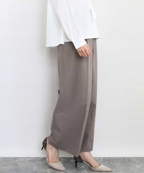 優秀ウールライクファブリックを使用したきちんとシルエットパンツ ■デザイン シーズンムードのあるクラシックなグレンチェック柄と使い勝手の良い無地の二柄をご用意したストレートワイドシルエットのパンツ。ウエストはゴム仕様のプルオンデザイン。イージーに履けるのに、きちんと感のあるシルエットがポイントです。 ■素材 イージーケア性に優れ、ピリングもしにくいウールライクファブリックを使用。程よい反発感とふくらみのあるソフトな風合いが特徴で、ウォッシャブル、抗ピリング、ナチュラルストレッチ、イージーケアを備えた優秀素材です。 ■コーディネート 主張しすぎずポイントになるグレンチェック柄と、着回しの良さ抜群の無地はどちらも、きちんと感がありお仕事などのONシーンにも活躍。無地のみ同素材のジャケットをご用意しているのでセットアップでの着こなしも楽しめます。 -------------------- 着用シーズン 春:○ 夏:× 秋:◎ 冬:○ -------------------- 洗濯表示:手洗い可 透け感:なし 裏地:なし 伸縮性:あり ウエスト:後ろゴム仕様 生地の厚さ:ふつう -------------------- ※自然光・照明の関係、パソコン・スマートフォンなどの環境により、実際と色味が違って見える場合がございます。予めご了承ください。商品の色味は、詳細画像をご参照ください。 ※サンプルでの撮影となるため、実際にお届けする商品と仕様やサイズが異なる場合がございます。