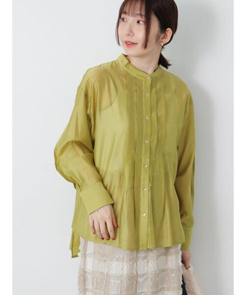 フロントにタックを施したクールなデザインが魅力のロングシャツ。ほんのりとしたツヤ感と透け感を併せ持つ素材が上品に映えます。すっきりとしたバンドカラーに、後ろ長めなヘムラインが旬度を高め、一枚羽織るだけで洗練された雰囲気に仕上げてくれます。 ※商品画像は、撮影環境やお客様のご利用のPC・スマートフォンのモニター環境などにより実物と色味に差異がある場合がございます。【その他採寸】F 着丈:[前]62cm[後]70cm