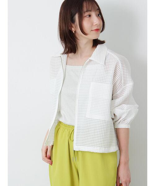 シアー素材のチェック柄が軽やかな印象のジップブルゾン。 両胸に配した大きめポケットがデザインのアクセントになり、実用性も兼ね備えています。 裾に施されたドロストを絞って、シルエットを変えられるのもポイントです。 ハイウエストのボトムスやワンピースともバランス良く合わせられるアイテムです。 ※商品画像は、撮影環境やお客様のご利用のPC・スマートフォンのモニター環境などにより実物と色味に差異がある場合がございます。