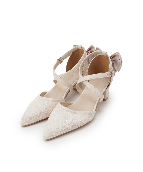 特別な日に履きたい、バックリボンのきらめきパンプス【Design/Styling】・光沢感のあるレース生地が、足元を上品に華やげるリボンパンプス♪・バックスタイルにあしらわれたリボンが、後ろ姿まで印象的に演出してくれます。・クロスデザインのストラップは、フック式&5段階で調節可能な安心仕様◎・つま先は透け感のないデザインで、上品さをしっかりキープ。・太めヒールで安定感があり、長時間の立ち姿や移動も疲れにくいのが嬉しいポイント♪・結婚式やパーティー、オケージョンシーンや特別なシーンにぴったりな一足です。・エクリュ、ブラックの2色展開となります。M:(02):23~23.5cm/ヒール5.3cmL:(03):24~24.5cm /ヒール5.3cm