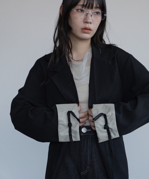 - 2026 VACANCY SPRING COLLECTION -チャイナ風リボンを施したデザインジャケット◆FABRICチャイナボタンを取り入れたフロントデザインがシンプルながら個性的なアクセントをプラスするジャケット。ウエスト部分にはお好みに工夫できるレースアップリボンを施しウエストマークすることでメリハリを付けられ、スタイルアップ効果も期待できます◎裏地の配色切替もポイントで、袖は折り返して着こなせばスタイリングに遊び心を。ゆったりとしたオーバーシルエットながらも、ウエストマークでシルエットの変化を楽しめる1枚です!カラーは、ヴィンテージライクなアイボリー配色のBLACK深みのあるボルドー配色のチャコールグレーの2色展開です。◆STYLEチャイナジャガードドッキングスラックスパンツ/SETUP/3way(VCIZI254041)と同素材を使用しSETUPとしても着ていただけるアイテムです。レーストップスやシアートップス、リブトップスをインナーに仕込んで女性らしい抜け感をプラス。ワイドボトムスやロングワンピースと合わせてルーズにまとめてもオススメです。袖口を折り返して裏地配色を見せると、よりモードで洗練された雰囲気に。オケージョンやパーティシーンにもオススメのアイテムです!ハレの日を優雅に演出する一着。入学・卒園から卒業式まで、幅広いシーンで活躍します◎・・・・・・・・・・・・・・・・・・・・透け感:なし裏地:あり(配色)伸縮性:なし光沢感:なし生地の厚さ:普通・・・・・・・・・・・・・・・・・・・・【お買い物をお楽しみいただく為に】▼お気に入り登録をオススメ致します▼♡をクリックして下さい。・《商品のお気に入り登録》で再入荷通知や、ラスト1点の通知、セールの際の通知も受け取ることができます。・《ブランドのお気に入り登録》で新作商品や再入荷など、お得な情報を受け取ることができます!【ATTENTION】 ※画像の商品はサンプルです。実際の商品と色味、仕様、加工、サイズ、素材等が若干異なる場合がございます。※撮影場所やお使いのモニター環境により若干お色味が異なる場合がございます。※製品によっては染料の特性上、湿った状態や汗をかいた状態での長時間の放置、または摩擦により、他のものへ色移りする恐れがありますので、着用時にはご注意下さい。 ※お洗濯については商品の洗濯タグ表記をご確認ください。※風通しがよく、湿気の少ない日の当たらない場所で保管して下さい。 ※また製品加工上、お手元に届く際に匂いが生じる場合がありますが、 ご使用を続けていく事により匂いは軽減されます。