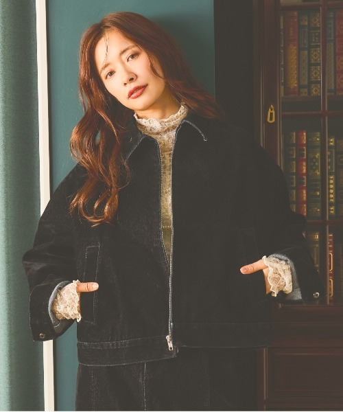 ーーーデニム地の上にフロッキー加工を施し他にはない1ランク上のデニムブルゾン。デニムのもともとの雰囲気も楽しみつつクラシカルな雰囲気も出せるとっておきの1着です。■point・なめらかで肌さわりの良いフロッキー加工を施したデニムブルゾン・裾部分にタックをとり、ほんのりカーブ感のあるレディライクなシルエットです・カジュアルになりすぎないようにファスナーあきで仕上げました・腰にかかるくらいの着丈でコーディネートのバランスもとりやすいですーーー■stylingスカートやパンツと合わせやすい着丈なので様々なスタイリングが楽しめます。同素材のスカートとセットアップで着用するとこなれ感のあるスタイリングに。※屋外の光や照明の当たり具合で、実際の商品の色味とカラー別画像の色味に若干の違いが発生する場合がございます。 詳細画像と併せてご確認の上、ご注文いただきますようお願い致します。【INFORMATION】■商品のお気に入り登録完売していても再入荷時に再入荷通知を受け取ることができますので、是非ご登録ください!■ブランドのお気に入り登録新商品や再入荷などの情報を受け取ることができますので、是非ご登録ください!