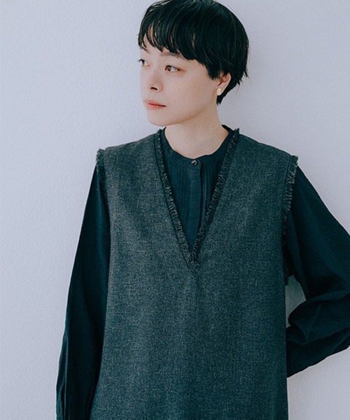 着回し力抜群なシンプルデザイン幅広いシーンで使いやすいランダムタックシャツーーー【素材】ナイロンビスコースの合繊特有の落ち感とジラジラとしたナチュラルな表情を持った素材を使用。綺麗すぎない自然な風合いが特徴です。【デザイン】シンプルなデザインで様々なシーンで使いやすいランダムタックシャツ。前身頃に機械で施されたピンタックが贅沢に前面に入っており、シンプルながらも表情のある一枚。バンドカラーのすっきりとした襟元とピンタックデザインが絶妙なバランスでデザインされています。トップス ブラウス シャツ タック卒園式 卒業式 入園式 入学式 同窓会 謝恩会 結婚式 七五三フォーマル セレモニー オケージョン シーンレスーーー【スタイリング】オケージョン対応のジャケットやVネックワンピース、ベストのインに合わせた着こなしがおすすめ。カジュアルにデニムやチノパンなどと合わせたデイリー使いも◎