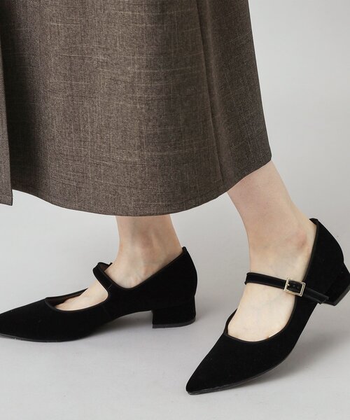 【ホリデーシーズンにもぴったりな大人メリージェーン】 ●大人っぽく履けるポインテッドトゥのメリージェーン ●秋冬にぴったりの起毛感のあるキレイめ素材 ●ワンステップで着脱できるイージー仕様 ●こだわり ストラップディテールの可愛らしさにポインテッドトゥを組み合わせ、大人の表情に仕上げたメリージェーン。 歩きやすく、自然なスタイルアップが叶う3.2cmのヒールを採用しています。 ストラップは甲の高さに合わせて調節可能で、バックルの下にゴムを忍ばせているのでワンステップで着脱できるイージーさも魅力。 カーブを付けたカッティングが優しい雰囲気に仕上がっています。 フラットシューズ風のデザインがデイリー使いしやすく、装いにクラシカルなムードをプラスしてくれます。 ●素材 <c/#019> ポリエステル素材の別珍を使用。 黒の濃度が濃く、短く揃えられた高密度で美しい毛足が特長です。 同色の合皮パイピングで質感のコントラストを付けています。 ゴールドのバックルで上品でクラシカルなムードに仕上げています。 <c/#419> 黒のベロア素材をベースに、小さなシルバーのスパンコールを織り込んだ華やかな素材。 ベルトとヒール部分にはc/#019と同素材の無地の別珍を使用し、同色の合皮パイピングを組み合わせてデザインにメリハリを付けています。 スパンコールに合わせたシルバーのバックルで統一感を出しています。 ※照明の関係により、実際よりも色味が違って見える場合があります。また、パソコン・スマートフォンなどの環境により、若干製品と画像のカラーが異なる場合もございます。 店舗へのお問い合わせ商品番号:085-04002 ●製品寸法: 55(22.5cm):ヒール高3.2cm 幅7.4cm 65(23.5cm):ヒール高3.2cm 幅7.7cm 75(24.5cm):ヒール高3.2cm 幅7.9cm 備考: