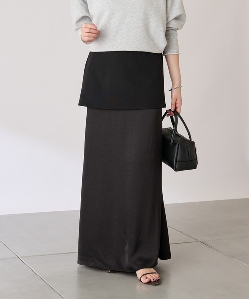 【COLLAGE GALLARDAGALANTE×gemeil コラボアイテム】 異なる素材のギャップを楽しめるセットアイテム 【POINT】 ・ほどよい光沢が上品な印象のサテンスカートとコーデが締まる厚地のミニスカートのセットアイテム。 ・ミニスカートはベアトップにしたり、パンツとレイヤードしたり由自在な着こなしが可能です。 ・どちらのスカートもウエストには紐を入れており、幅広い体型の方におすすめです。 ・レイヤーすることでお尻周りをカバーできるのも嬉しいポイント◎ 【おすすめコーディネート】 セットで着る際は、スカートが主役になるので上は無地やコンパクトにまとめるとバランスが良いです◎ 上品な光沢のサテンスカートは、きれいめなブラウス×ミュールでセミオケージョンにもおすすめです。 【おすすめのスタイリングアイテム】 ・シアーチュールロンT CLZ1052106A0010 ・ルーズスウェット CLZ1052406A0007 【素材】 ロングスカート:ポリエステル100% ミニスカート:ポリエステル99%、ポリウレタン1% 透け感:なし 裏地:なし 伸縮性:ミニスカートのみあり 光沢感:ロングスカートのみあり 洗濯:洗濯機可 ≪返品・交換について≫ ・着用後、洗濯後の返品・交換は致しかねます。 ・商品到着後、着用前に商品状態のご確認をお願い致します。 ・ECサイトでご購入いただいた商品は、お修理を承っておりません。 【気になる商品は「お気に入り」登録を】 ハートマークをクリックし、お好きなカラーを選んでお気に入りに登録すると 入荷情報や残り1点の通知、完売カラーの再入荷、セール情報などを受け取ることができます。 ※撮影場所やお使いのモニター環境により若干お色味が異なる場合がございます。 特にロケの撮影では明るく見える傾向にございます。詳細撮影画像で色味をお確かめくださいます様お願いいたします。 ※サンプルで撮影をしております。若干の仕様が変更になる場合がございますので予めご了承の上ご注文くださいますようお願いいたします。 ※サンプルでの採寸のためあくまで目安となります。予めご了承ください。