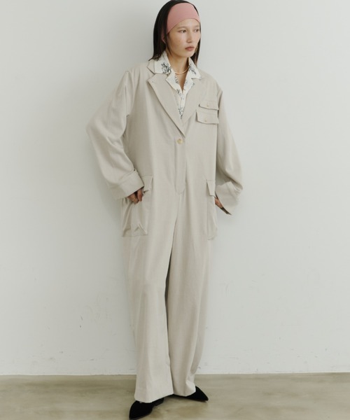 ----- room153 -----大人女子のためのモードカジュアル。ベーシックの中に、ひとクセあるデザインや実用性、遊び心を取り入れながら、”FASHIONを自分らしく”楽しむ大人女子をプロデュース。■推奨サイズ(150cm代前半〜170cm代前半の方に推奨しております)under 155cm ▷0サイズover 156cm ▷ 1サイズ※0サイズは小柄さん向けのサイズ感となっております。【Design】”作業着”をデザインに落とし込んだ、1枚で決まるカジュアルなトレンドライクジャンプスーツ。ゆったりとしたシルエットで着心地が良くパンツ部分はストレートワイドなのでスタイルアップにもなります。胸元のダブルフラップやラペルボタンなど、遊び心もプラス。フロントのボタンはスナップの様式となっており、着脱のしやすさも考慮しています。大きいポケットがついているので、ラフに着れるのに利便性も高いアイテムになっております。【Variation】重厚感のあるチャコールグレー・よりカジュアルなライトベージュの2色展開。※トルソーに着せた画像が本来の素材の色味に近しいものです。撮影の照明、自然光などの条件により色の感じ方が変わる場合がございますが写真後半のトルソー写真をぜひご覧ください。【Styling】ラペルボタンを留めるとよりモードな印象に。腰で巻いてトップスを見せても◎インナーに柄シャツやブラウスを合わせることでカジュアル過ぎない大人っぽいコーデになります。小物やトップスにカラーアイテムを合わせることで抜け感のあるおしゃれな印象になります。ビスチェを上からレイヤードしたり、大きめ襟のブラウスを合わせたり様々な着回しが可能です。スニーカーでカジュアルに、ローファーやヒール、ブーツを合わせることで一気にモードな雰囲気に変わります。*********************透け感:なし生地の厚さ:普通裏地:あり伸縮性:なし*********************■Item Attention製品によっては染料の特性上、湿った状態や汗をかいた状態での長時間の放置や摩擦により、他のもの(特に白物)へ色移りする恐れがあります。ご着用時には十分ご注意下さい。■Attention※発売日時やお届け予定時期は変更となる場合がございます。あらかじめご了承下さいませ。※商品のお色味は、お使いのデバイスや撮影時の照明等により、実物と若干異なって見える場合がございます。また、撮影ではサンプルを使用しておりますため、実物の商品と若干サイズ感が異なる場合がございます。※お取り扱いにつきましては、品質表示とアテンションタグを必ずご確認下さいませ。■商品のお気に入り登録再入荷の通知や、ラスト1点の通知、セールの通知がいち早く届きます!■ブランドのお気に入り登録新商品や再入荷など、いち早くブランドのお得情報が届きます!