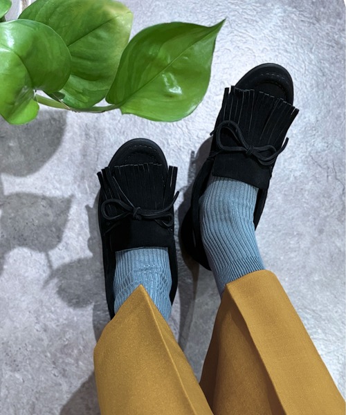 表情豊かなベロアを使用ソフトに仕上げたフリンジモカシンくったりこなれた質感と長めのフリンジが、大人の雰囲気です。一針々丁寧に縫い上げたモカシンは、しなやかなで包み込まれるような履き心地。ソールの返りが良く、甲を深めにしているので歩きやすさも抜群です。デニムはもちろんスカートとも好相性。注目のフォークロアムードを普段のスタイリングに大人っぽく取り入れられる1足です。【APOM -アポム-】A Piece Of Me/A Part Of Me自分らしいスタイルの仕上げに、靴は欠かせないピースですそして自分の一部だと思える靴との出会いはかけがえのないものですコンフォートなのにキチンと見えて1日中履いていられるミニマルでタイムレスなデザインでありながら、しっかり現在を感じられるエフォートレスとシックの調和それらをデザインごとに最適な製法・パターンを用い、素材本来の特徴を生かすことで表現をしていますいつも一緒にでかけたくなる靴APOMは自分のスタイルを持った大人のリアルスタンダードです<MATERIAL>イタリア老舗タンナーの上質な革を中心に、繊細な日本のレースや生地など厳選した素材を使用していますライニングは耐久性・通気性が高く、しなやかなピッグスキンを使用していますインソールには日本の資材メーカーと共同開発をした、通気性が高く、抗菌・防臭効果のある人工皮革を使用しています<FUNCTION>日本人の足型にフィットするように日本の木型職人が削ったラストを採用していますすべての靴に返りの良い中底とクッション性の高いスポンジを組み合わせ、疲れにくい設計にしていますまた、ブーツや晴雨兼用シューズはカップインソールにすることで、レザースニーカーのような履き心地を実現しています<SUSTAINABILITY>梱包資材はすべてリサイクルペーパーを使用し、プラスチックごみの削減に取り組んでいますインソールはエコテックス認証されたペットボトルのリサイクル素材を使用しています長くお使いいただけるように、持ち運びや保管をするのに便利なシューズバッグを付属しました革靴は多くの工程が人に手によるものであり、使用されている革は天然素材です過度な検品による製品の廃棄ロスを削減するため、着用に支障のない小さなキズや汚れ等は日本の職人が仕上直しをして製品として流通させています※画像の商品はサンプルです。お届けする商品に仕様・サイズ等の変更が生じる場合がございます。予めご了承ください。