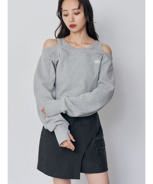 程よい肌見せがレディライクなスウェットトップスクロップド丈でスタイルアップもかなう1着◎■アイテム裏毛素材の肌見せスウェットトップス。程よいショルダー部分の肌見せで、カジュアルになりすぎず抜け感を演出できます。胸元のワンポイントロゴはラメ糸仕様にしているのでアクセントに◎同素材のスウェットパンツと合わせてセットアップとして着用していただくのがおすすめです。--------------------------------------------生地の厚さ:普通 伸縮性:あり透け感:なし サイズ感:普通--------------------------------------------【知って得する便利機能◎ 】■商品のお気に入り登録再入荷時、ラスト1点の時にお知らせします。■ブランドのお気に入り登録新商品やお得な情報など、いち早くお得な情報をゲット!ぜひご活用ください!※着用画像はフラッシュの加減で実際の製品と色味等が異なる場合がございますので、生地のズームアップ画像をご確認ください。※ご利用の端末画面の設定により実際の商品と色味が異なる場合がございます。