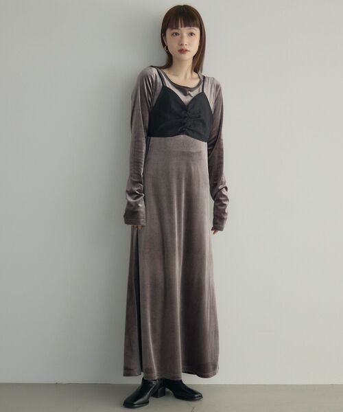 <秋の一枚着ワンピース> ▼デザイン ・バックデザインがポイント ・袖口はサムホール ・程よいフレアシルエット ▼コーディネート ・1枚でサマになる大人な雰囲気のベロアワンピ ・バックネックもデザインを入れ、シンプル過ぎない印象に。 ・ジャケットやベストなどレイヤードスタイルもおすすめ ・このもやアクセサリーできれいめにまとめれば オケージョンシーンにも。 ------------------------------ 生地感:普通 伸縮性:あり 透け感:なし 裏地:なし セット:ペチコート(スカートタイプ) ------------------------------ ▼ブランド紹介 kivi (キヴィ) シンプルだけど、時にエッジを効かせ、 「大人のかわいい」の実現へ。 自分を磨き、大切にできる ニューノーマルを生き抜く全ての女性へ。 #kivi #2025aw #ベロア #ワンピース #ロングワンピース #ベロアワンピース #秋冬ワンピ #オケージョン ▼注意事項 ※撮影環境やモニター環境によって実際の商品とお色味が多少異なってみえる場合がございます。 品番: KW580022T001 / 品名:ベロアロングワンピース