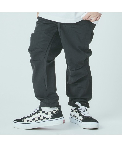 ※モデル : 身長 117cm / 着用サイズ Mサイズ (120cm)グログランナイロン生地を使用しましたミリタリー型のパンツです。グログランナイロン生地は、耐久性があり、摩擦に強く形状を保持しやすい生地です。しっかりとしたハリ感があるので型崩れしにくいのが特徴。【SMOOTHY/ スムージー】メンズブランドを12年間手掛けてきた品川雄一ディレクションによるキッズブランド。エグゼクティブディレクターには、現在スタイリストとして多くのメディアで活躍している菊池陽之介を迎え、THE DRESS WRAPPEDWITH DADDY'S LOVE TO YOU. 『パパが考えた愛情に包まれた子供服』というコンセプトに基づいて展開されています。普遍的なアメカジをベースにワークやトラッド、ミリタリーの要素を加えたスタイルを提案。