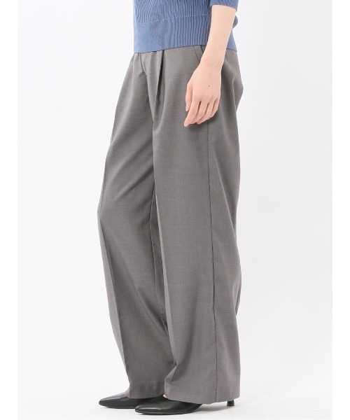 ■素材特徴 ポリエステル・レーヨンにポリウレタンを混紡した、綺麗目な布帛生地を使用しています。程良い落ち感と優れたストレッチ性、メランジ調の杢見えの表情とツイルの織り柄が特徴です。 ■機能 【ストレッチ】伸縮性に優れた素材(ウエストも伸びる)でストレスフリー。 【UVカット】紫外線を通しにくい生地を使用することでお肌を守ります。 【マシンウォッシャブル】洗濯機で洗えます。(要ネット・弱水流) ■デザイン 腰回りにゆとりがあって動きやすいワンタックのワイドパンツです。ウエストと脇ポケットの切り替えデザイン、キチンと感のあるセンタープレス、ウエストのバックシャーリングがポイント。フロントホック付き、前ファスナー付き、ベルト通し付き、前後ポケット付きです。綺麗目にもカジュアルにもマッチするのでオンオフ兼用で活躍してくれます。 ■シルエット ストンとした直線のラインが美しいワイドシルエットです。脚のラインを隠せるので体型カバーや脚長効果も期待できます。裾部分は加工済みです。(股下M:72-L:73・シングル仕上げ) ■コーディネート リブニットやブラウスをトップスインするとバランス良くまとまります。ジャケットを羽織ると上品なオフィカジュアルコーデが完成。スエットやシャギーニットなどカジュアルなトップスと合わせて、あえてラフに着こなすのもおすすめです。 フィット感:標準 シーズン:秋冬 展開カラー:グレー *アテンションタグ・洗濯ネームを御確認の上、着用又は取り扱い下さい。 *光の当たる場所や高温多湿になる場所での保管は避けて下さい。 *使用の有無に関わらず、経年劣化は進行いたしますのでご了承下さい。 *生地の裁断・縫製方法により、写真と同様の柄が出ない場合がございます。 *閲覧デバイス・環境により質感・色味に誤差が生じる場合がございます。 予めご了承くださいませ。 * ZOZOTOWN お買い物ガイド ・商品のお気に入り登録 ♡をクリックしましょう!完売カラーの再入荷通知や、ラスト1点の通知、セールの通知をお知らせします。 ・ブランドのお気に入り登録 新商品や再入荷など、いち早くお得な情報を受け取ることができます。 ・最短で翌日お届け 商品をカートに入れた後、注文内容の確認ページで「即日配送」を選択していただければ、最短でご注文した翌日にお届け致します。 (ZOZOTOWNお買いものガイドをご参照ください) *裾上げ等のお直しが必要な場合は、ZOZOTOWN納品書をご持参していただき最寄のタカキューグループ店舗までお持ちください。 お直し代金 お直しにかかる期間は店舗によって異なる場合がございますので、詳しくは店舗スタッフまでお問い合わせください。