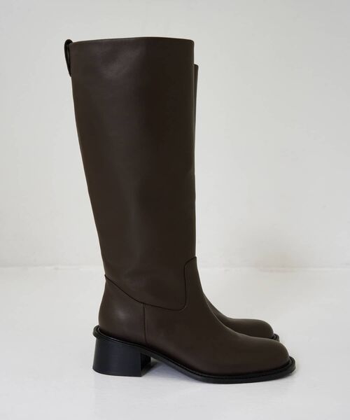 ストレートシルエットのラウンドトゥロングブーツ。柔らかい質感の牛革を使用。足が長く綺麗に見えるきれいなシルエットです。 筒は足首ゆったり目のセミルーズフィットタイプ。履き心地の良さも追求されていて、歩きやすいのもポイント。 程よいボリューム感とクラシカルな印象で、ミニ丈のボトムやワンピースとも相性がよく様々なスタイリングに合う一足となっております。 極力ハギを入れずに一枚の革で軽く仕上げました。すっきりと美しいシルエットを追求し、足首のファスナー当たりも無い軽く快適な履き心地。柔らかいのにハリがあり、表面感が美しく黒のカラーが際立つ革を使用。 通常よりハギが少ない為、大きなパーツで綺麗な革を選定する贅沢な作りです。 【商品詳細】 ・Sサイズ:23~23.5cm/ヒール高さ47mm/筒丈370mm/履口378㎜/ふくらはぎ360mm ・Mサイズ:23.5~24.0cm/ヒール高さ47mm/筒丈375mm/履口393㎜/ふくらはぎ370mm ・Lサイズ:24.0~24.5cm/ヒール高さ49mm/筒丈380mm/履口408㎜/ふくらはぎ380mm