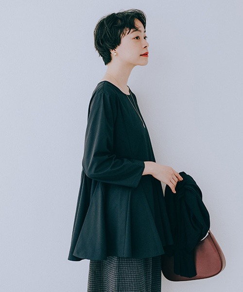 裾のたっぷりフレアがポイント女性らしい印象のチュニックブラウスーーー【素材】コットンライクポリエステル素材を使用。膨らみのあるポリエステルで、クリーンな仕上がりが特徴です。また、イージーケアとマシンウォッシャブルの嬉しい機能付き。【デザイン】裾にたっぷりフレアを入れたチュニックブラウス。胸元をすっきりと仕上げたデザインになっており、裾に膨らみがありながらもバランスよく綺麗にご着用いただけます。オケージョンにはもちろん、カジュアルアイテムと合わせてデイリー使いも◎トップス ブラウス シャツ フレア ペプラム卒園式 卒業式 入園式 入学式 同窓会 謝恩会 結婚式 七五三フォーマル セレモニー オケージョン ーーー【スタイリング】さらっと一枚ではもちろん、ニットやスウェットのインに合わせて裾をちらっとのぞかせたレイヤードもおすすめ。ジャケットやカーディガンのインにもお使いいただけます。