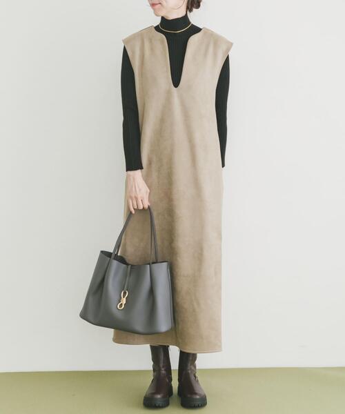 長く愛される、上品ジャンパースカート。 柔らかなフェイクスエード素材を使用したジャンパースカートは、上品な印象を与えるロングセラーアイテム。シンプルなデザインで着こなしやすく、カジュアルにもきれいめにも合わせやすい一枚です。フェイクスエードの上質な質感が、秋冬のシーズンムードを高めてくれます。デイリーからお出かけまで幅広く活躍し、大人の着回しに重宝する万能スカートです。 【2025 Autumn/Winter】【25AW】 ※この商品は、スエード風素材を使用しています。 ※素材の特性上、他の製品との摩擦や水に濡れると多少色落ちする場合があります。 ※その他お取り扱いに関しましては、商品に付属のアテンションタグをご覧ください。 総重量 : 約570g ※商品画像は、光の当たり具合やパソコンなどの閲覧環境により、実際の色味と異なって見える場合がございます。予めご了承ください。 ※商品の色味の目安は、商品単体の画像をご参照ください。 ▼お気に入り登録のおすすめ▼ お気に入り登録商品は、マイページにて現在の価格情報や在庫状況の確認が可能です。 お買い物リストの管理に是非ご利用ください。 素材感 透け感 : なし 伸縮性 : ややあり 裏地 : なし 光沢 : なし ポケット : あり Free