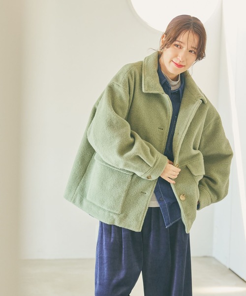 サマになる立体的なシルエット 幅広いスタイリングに馴染む秋に便利なボアブルゾン ーーー 【素材】 柔らかく仇触りの良い素材を使用。 着心地の良さも特徴です。 【デザイン】 立体的なフォルムがポイントのボアブルゾン。 ボリューム感のあるお袖が特徴的で、さっと羽織るだけでサマになるシルエットです。 フロントはボタン仕様になっており、カジュアルすぎないデザインもポイント。 柔らかなニュアンスカラーのオフホワイトやセージ、大人っぽい雰囲気で着こなせるグレーの3色展開◎ アウター ボア ブルゾン ーーー 【スタイリング】 長すぎない着丈なのでパンツともスカートとも好相性。 カジュアルから綺麗めまで幅広いスタイリングをお楽しみいただけます。