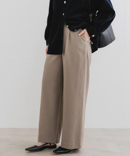 【広がりすぎない上品なシルエットが魅力の、タックワイドパンツ】ポリエステルベースの素材は、シワになりにくくお手入れが簡単。程よくストレッチが効いているので、ストレスフリーな履き心地です。秋冬のワードローブに欠かせない、着回し力の高い一本に。深めに入ったタックが腰回りをすっきりと見せ、脚のラインを拾わないワイドシルエットが、体型カバーも叶えます。ブラウスやニットをウエストインして着用すると、スタイルアップした着こなしが完成。オーバーサイズのトップスと合わせた、リラックス感のあるコーディネートもおすすめです◎【F by ROSSO(エフバイロッソ)】「母・妻・私 しなやかに行き来する服」をブランドコンセプトに、来する大人の女性に向けた、ユースフルなファッションを提案します。『UR TECH SMOOTHLUXE/スムースリュクス』上質なポリエステル糸を使用し、滑らかで温かみのある風合いに仕上げました。株式会社アーバンリサーチが独自開発して生まれた素材「UR TECH」シリーズ。「イージーケア」「速乾」「ピリング防止」「静電気防止」機能を併せ持った高機能な素材です。【2025Autumn/Winter】【25AW】※この商品は、素材の特性上、激しい動きで強い力がかかったり、他のものに引っ掛かったりすると、滑脱(縫い目が滑って開いたり、縫いしろが抜ける)したり、目寄れ(織り糸が滑って片寄り、織り目が開く)が生じる場合があります。ご使用の際には十分ご注意ください。※商品画像は、光の当たり具合やパソコンなどの閲覧環境により、実際の色味と異なって見える場合がございます。予めご了承ください。※商品の色味の目安は、商品単体の画像をご参照ください。▼お気に入り登録のおすすめ▼お気に入り登録商品は、マイページにて現在の価格情報や在庫状況の確認が可能です。お買い物リストの管理に是非ご利用ください。素材感透け感 : なし伸縮性 : なし裏地 : なし光沢 : なしポケット : ありBEIGE:164cm(38) / 161cm(38)363834