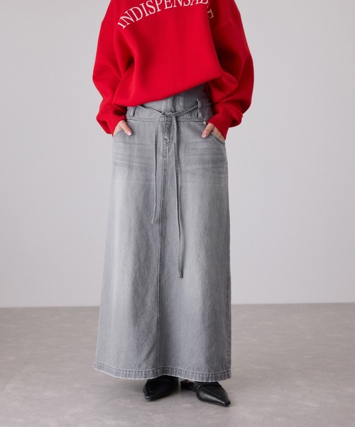 リラクシーなシルエットが大人のカジュアルムードを演出。こなれ感のあるウエストのディティールにこだわった、デイリーに着映えるデニムスカート◆2025-26秋冬◆ ADAM ET ROPE' FEMME 【Material】 ブラック:経糸3本と緯糸1本を使用したツイルデニム素材を使用。オールドヨーロッパのようなクラッシックで落ち着きのある色味が特徴。重厚感があり、上品な印象。 グレー:経糸2本と緯糸1本を使用したツイル素材を使用。硫化染料にクリーム色を混ぜたデニム素材に洗い加工をすることで、独特のくすみやフェード感が魅力。 【Design】 ベルト切替をなくした、ルーズな印象のシルエット。 ウエスト位置が低く見えるよう、ベルトループやヨーク位置を下げ、自然なリラックス感を演出。 フロントジップ仕様で程よいカジュアルさに加え、付属の紐をラフに垂らすことで、軽やかな抜け感のあるアイテム。 ユーズド感のあるやや柔らかなデニム素材に、力を抜いたような崩しのあるディテールを施すことで重たくなりがちなデニムスカートに新鮮さをプラス。 【Color】 カジュアルすぎないシックなブラック、存在際立つライトグレーの2色展開。 【Styling Point】 体にフィットするトップスやクロップドスウェットと合わせて、ウエストデザインを魅せるスタイリングがおすすめ。 --------------- 透け感:なし 裏地:なし 伸縮性:なし 光沢感:なし 生地の厚さ:中肉 開き方:フロントファスナー ポケット:あり --------------- ◇モデル情報 身長:169cm size:38