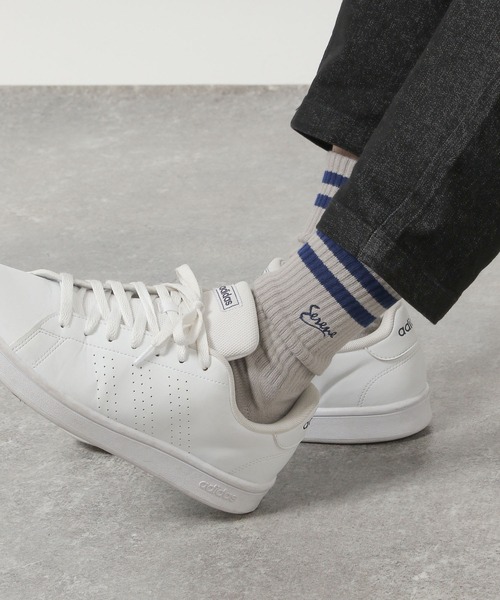 ラインと刺繍ロゴが印象的なソックス。カジュアルな印象で、カラー毎に異なる刺繍ロゴを施しているのもポイント。