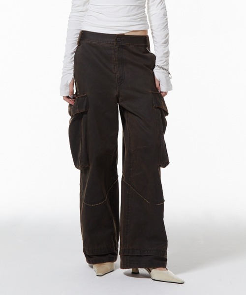 DESCRIPTION オイル加工を施した綿素材を使用し、レザーのような質感に仕上げたワイドカーゴパンツ。 ボリューム感のあるポケットをあえて大きめに配置し、存在感のあるデザインに。 腰を落としてゆるっと着こなせるシルエットが抜け感を演出します。 仕上げに施した洗い加工で、程よいヴィンテージ感をプラスしました。 MATERIAL 表地:綿65%ポリエステル35% 洗濯方法:ドライ 注意:お使いのモニターによって、カラーが違って見える場合がございます。 ※商品画像はサンプルのため、色味やサイズ、素材の混率等の仕様に変更がある場合がございますので、予めご了承ください。 【JOSE MOON/ジョゼムーン】 スタンダードの中にもエッジの効いたアイテムも展開し、遊び心ある自由なスタイリングを提案 ■商品のお気に入り登録 再入荷、残り1点などの通知を受け取ることが出来ます。 ■ブランドのお気に入り登録 新商品や再入荷、ショップのおすすめトピックスなど、いち早くブランドのお得な情報を受け取ることができます。 ※ご注文いただいた予約商品のお届け時期の確認は、注文履歴ページより行えます。