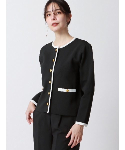 ”ジャケットは堅すぎるけど、カーディガンよりはきちんとしたい” そんな日にピッタリのニットジャケットです。 バイカラーの配色カラーやゴールドのメタルボタンがアクセントになり、1枚で着映えするデザイン◎ ・長すぎない着丈、すとんと落ちる身頃でパンツ、スカートともに好相性 ・ポリエステルをベースにした軽めの素材で、季節の変わり目から長く着用出来る ・型崩れしにくく、きちんと感をキープできるミラノリブ編み ・ふっくらとした弾力でストレッチ性にも優れ、動きやすくノンストレスな着心地 ・通勤服としてはもちろん、お子様の学校行事やオフスタイルにも着回しOK 【機能】 ハンドウォッシュ/ご家庭で手洗い洗濯・ケアが可能です。 【仕様】ラウンドネック/長袖/6つボタン 【洗濯表示】手洗い可 ※腰ポケットのディテールは飾りであり、実際にはお使い頂けません。 【38】着丈54.0cm バスト98.0cm 肩幅40.0cm 袖丈55.0cm ※商品の仕上がりサイズ(出来上がり寸法)は上記のサイズ表をご覧下さい。 ※同サイズまたは同一商品でも、生産の過程で1.0cm~2.0cm程度の個体差や着用感の違いが生じる場合がございます。 ※カラー名は管理用の表記となります。実際の商品の色味は商品画像をご確認ください。 ※商品画像はできる限り実際の色に近づけて掲載しておりますが、パソコン環境により色味に誤差が生じる場合がございます。予めご了承下さいませ。 ーーーーーーーーーーーーーーーーーーーーーーーーーーーー 【スタッフ着用コメント】 ①女性スタッフ 身長:154cm ・着用サイズ 38 ・着用感 バイカラーがトレンド感を演出✨こなれ感が増す1着です☺︎ ジャケットは堅すぎるけど、カーディガンよりはきちんとしたい、を叶えたニットジャケットになっています🌷 カーディガンとして羽織ることも、ニットとして着ることもできる逸品です◎ ➁女性スタッフ 身長:158cm ・着用サイズ 38 ・着用感 ジャケットほどはかっちりしたくない、 でもニットやブラウスだけだとカジュアルすぎるといった場面におすすめのニットジャケット⭐️ ジャケットとカーディガンのあいだぐらいで、キレイめコーデに仕上がります。 ③女性スタッフ 身長:167cm ・着用サイズ 38 ・着用感 楽なのにカッチリも見えるデザインになってます✨ ーーーーーーーーーーーーーーーーーーーーーーーーーーーー 【おすすめシーン】 オフィスカジュアル、ビジネス、仕事、通勤 お出かけ、ショッピング、食事会、お呼ばれ、デート、パーティー、女子会 セレモニー、2次会、1.5次会、成人式、同窓会、謝恩会 七五三、お宮参り、誕生日会、入学式(入園式)、卒業式(卒園式) 演奏会、発表会、参観日などの学校行事