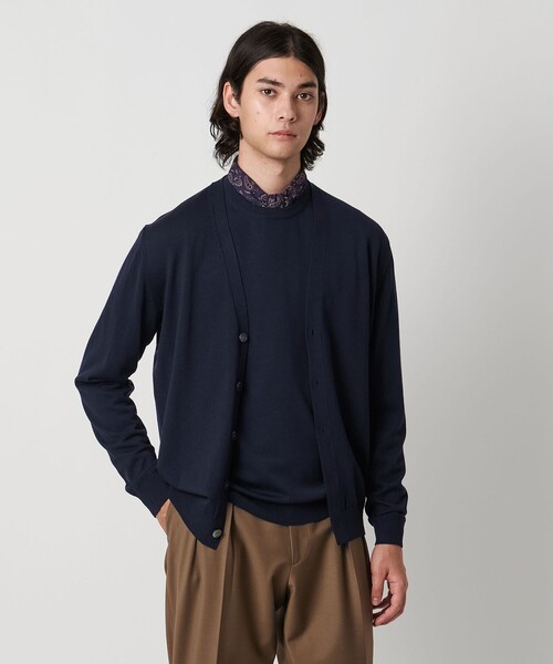 Vゾーンを美しく魅せ、品格あるスタイルを演出するハイゲージカーディガン■デザインきめ細かくクリアな表情で、トラディショナルかつ上品な印象のハイゲージカーディガン。ほどよくリラックスしたサイズバランスで、ジャケットのインナーとしても重宝します。ベーシックなNAVYとBEIGEの2色展開。■素材原料に細番手の糸を三子撚りにした、ウール100%のハイゲージ天竺素材を使用。目がクリアで、モチっとしたふくらみ感と光沢のある表面が特徴です。型崩れしにくく、着用時もきれいなフォルムをキープします。■コーディネートカジュアルなスタイルを上品に彩るおすすめの一着。スーツからジャケットスタイルまで幅広く活躍します。============================裏地 :なし透け感:なし光沢感:ややあり============================【注意事項】※商品に「取り扱い上の注意書き」、「洗濯表示」がございます場合は、使用前に必ずご確認ください。※商品画像は、光の当たり具合やパソコンなどの閲覧環境により、実際の色味と異なって見える場合がございます。あらかじめご了承ください。※商品の色味の目安は、商品単体の画像をご参照ください。店舗へお問い合わせの際は、全国のUNITED ARROWS各店舗まで下記の品名/品番をお申し付けください。品名:UA H/G CGN 品番:11151060176