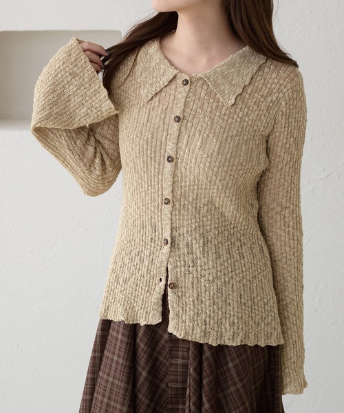 この時期にちょうどいい程よいシアー感が魅力的。旬なコーデに仕上がるニットポロ■Point・程いシアー感・柔らかく軽い着心地・首元がすっきり見えるレギュラーカラー・身体にフィットするすっきりとしたシルエット・大人気のフレアスリーブで大人な印象に・マーブル調のボタンがアクセントに■Coordinate1枚でももちろんビスチェなどと合わせたレイヤードスタイルにもおすすめ◎すっきりしたシルエットなのでボリューム感のあるボトムスと相性抜群。カーブパンツなどのスラックスで大人に、ロングスカートと合わせて女性らしく着用するのも◎…………………………………透け感:若干あり伸縮性:若干あり生地の厚さ:薄め~普通…………………………………※商品名とタグの記載名が異なる場合がございますが、商品に問題はございません。apresjour clair (アプレジュールクレア)apres_jour から大人の女性に向けた新ライン誕生カジュアル×フェミニンスタイルをお届けします。毎週木曜20:00〜新作発売-オフィシャルInstagramにて最新情報や限定情報を毎日更新中!-※ご覧のモニター環境や撮影環境により実際の商品と多少色味が異なって見える場合がございます。ご理解の程よろしくお願いいたします。【お買い物をよりお楽しみいただく為に♪】▼商品のお気に入り登録をおすすめします♡をクリック!完売カラーの再入荷や、ラスト1点の通知、セールの際の通知を受ける事ができます。ブランドのお気に入り登録もご一緒にお願い致します。