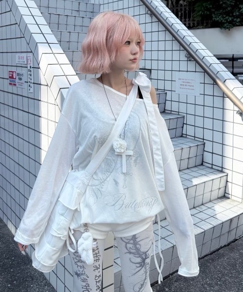 ▪アイテムポイントトレンドの韓国ストリート×Y2Kスタイル。この秋、持っておきたいのはこの1枚!ほんのり透けるシアートップス感を持たせたオーバーサイズの長袖Tシャツ☆シンプルなUネックは広めに設計され、首元とデコルテに抜け感をプラスすることでゆるくも色気のあるストリートルックを演出☆フロントにはクロスとハートのグラフィックを大胆に配置、主張あるプリントがシンプルなボトムとの相性をぐっと高める☆デイリー使いしやすいロンT☆ジャケットやジップパーカーのレイヤードもオススメ☆ボトムスはデニム・カーゴパンツ・スカートどれでも合わせやすい万能アイテム☆エンジェルコアやウィッシュコア、バレエコアにもおすすめアイテム♡厚み:薄い透け感:有り伸縮性:普通裏地:無し※着用画像はフラッシュの加減で実際の製品と色味等が異なる場合がございますので、詳細のズームアップ画像をご確認ください。※サイズは、測定方法と測定者によって誤差があります。素材に応じて1cm~3cmまでの差も生じます。予めご了承ください。【nmtc+/エヌエムティーシープラス】東京、大阪、名古屋、福岡にショップを構えるセレクトショップ" Never mind the XU "( ネバーマインドザエックスユー / エックスユー ) と"シンプル"且つ"ニュアンス"で提案するunisex fashionを表現し、ディテールにこだわった独自のセレクトを展開するショップ Chikashitsu +( チカシツプラス )そんな2ショップを掛け合わせ、独自の感性で解釈し直した性別問わず使用可能なアパレル、小物を展開するセレクトショップ nmtc +( エヌエムティーシープラス )世界中からピックアップした多彩なアイテムを展開し、トレンドやディティールを意識したファッションを発信していきます。ユニセックス、ジャンルレスなデザインにこだわったアイテムがリーズナブルな価格で手に入るのも嬉しいポイント。ストリート、モード、カジュアル、綺麗目、シンプル、リラックススタイルなど様々なスタイリングをお楽しみいただき、“自分らしさ” の表現が必ず見つかる。そんなラインナップで一期一会の高揚を感じながらお買い物をお楽しみください。【気になる商品はお気に入り登録がおすすめ】▼商品をお気に入り登録!(♥マークをクリック)完売商品の再入荷やラスト1点の通知、セール開始時にお知らせ!▼"XU/Chikashitsu+"をお気に入りブランドに登録!新商品や再入荷など、ブランド最新情報をいち早くお知らせ!是非、ご活用いただきお買い物をお楽しみください◎