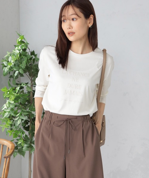 シックなロゴ使いで幅広く着回せるTシャツ【機能/素材】ほど良い厚みで着こなしやすいカットソー素材。【デザイン】同系色のロゴフロッキープリントが大人っぽいTシャツ。主張が強すぎず、無地感覚で幅広く着回せます。【お勧めスタイリング】レイヤードスタイルはもちろん、バックロングシルエットで一枚でも着こなしやすくなっています。【GALLORIA /ギャロ―リア】ベーシックだけじゃ物足りない、ほどよくトレンドを取り入れ シーンレスにきちんと見える。そんな願いを叶えてくれる、いまの空気感をまとった大人のデイリー服「GALLORIA」買いやすいプライスで、バリエーション豊富に揃うライフスタイルに寄り添うコレクションを展開します。◆Instagram:@galloria.sns公式Instagramでは最新情報を定期的に更新中!フォローしてお得な情報をゲット!■商品のお気に入り登録のおすすめ■完売カラーの再入荷通知、ラスト1点、お得なクーポンやお値下をお知らせします。■ブランドのお気に入り登録のおすすめ■新商品や再入荷のお知らせ等、ブランドのお得なクーポンやお値下をお知らせします。