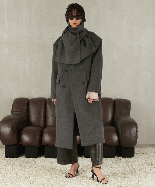 ー Style ー同素材のマフラー付きウールコート。オーバーショルダー+肩パッドが入っていることでマニッシュなムードを演出。ノーカラーでVネックの仕様が抜け感をプラス。ロングブーツとの相性も◎。ー Fabric ーSuper120sのウール糸を使用したコート地を使用。AZAMI起毛という加工をかけることで表面に毛羽が生まれ柔らかな仕上がり。保温性も抜群で見た目より軽いのも◎。【PRANK PROJECT/プランクプロジェクト】常識に縛られない洗練された大人の女性に向けて”意外性” と ”品の良さ” をMIXさせた上質なNEW MODE BRAND・商品のお気に入り登録再入荷、残り1点などの通知を受け取ることが出来ます。・ブランドのお気に入り登録新商品や再入荷、ショップのおすすめトピックスなど、いち早くブランドのお得な情報を受け取ることができます。