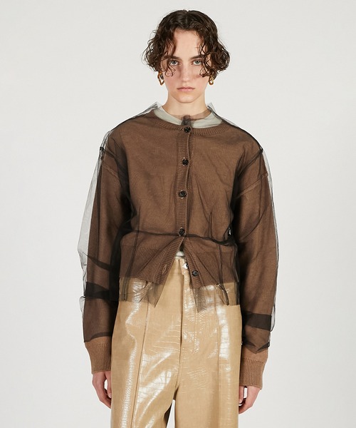 ー Style ー 軽やかなチュールを組み合わせたリバーシブル仕様のニットカーディガン。 羽織るだけで華やかさを添えてくれる万能な一着。 1枚で異なる表情を楽しめるデザインは、シンプルなニット面と、華やかなチュール面で気分やシーンに合わせてスタイリングが可能。 絶妙な着丈でどんなシルエットのボトムスとも合わせやすく、秋口から春先まで長い間重宝するのも魅力。 ニット面を表で着た時に袖や裾からのぞくチュールがさりげないアクセント。 ー Fabric ー あえて綺麗すぎない少しカジュアルな目面のニットと繊細で軽やかなチュールをリバーシブルで使用。 【PRANK PROJECT/プランクプロジェクト】 常識に縛られない洗練された大人の女性に向けて ”意外性” と ”品の良さ” をMIXさせた 上質なNEW MODE BRAND ・商品のお気に入り登録再入荷、残り1点などの通知を受け取ることが出来ます。 ・ブランドのお気に入り登録新商品や再入荷、ショップのおすすめトピックスなど、いち早くブランドのお得な情報を受け取ることができます。