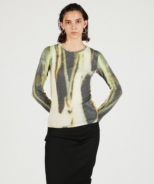 ー Style ーニュアンス感のあるフォトプリントを施したクルーネックトップス。1枚でもレイヤードとしても着回せ、シンプルなスタイリングにアクセントを効かせるアイテム。モノトーンコーデのさりげない外しアイテムとしても活躍し、ニットの袖からチラ見せしたり、ワンピースのインナーとしても重宝する一着。 ー Fabric ー伸縮性に優れたレーヨン混のベア天竺を使用。柔らかな肌ざわりで着心地の良さは抜群の仕上がり。【PRANK PROJECT/プランクプロジェクト】常識に縛られない洗練された大人の女性に向けて”意外性” と ”品の良さ” をMIXさせた上質なNEW MODE BRAND・商品のお気に入り登録再入荷、残り1点などの通知を受け取ることが出来ます。・ブランドのお気に入り登録新商品や再入荷、ショップのおすすめトピックスなど、いち早くブランドのお得な情報を受け取ることができます。