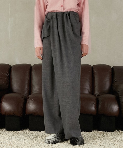 ー Style ーウエストのアシンメトリーなドレープが目をひくスラックスパンツ。マニッシュなスーチング素材を使用しながらリラックス感のあるデザインでイージーに着用できる一着。ウエスト全周ゴムを施しやさしく身体にフィットしつつ、体型カバーも叶えるギャザーデザイン。 ー Fabric ー程よい伸縮性のある梳毛素材できちんと感がありつつ、リラックスした履き心地。暖かみのある微起毛+ウール高混率で保温性も兼ね備えている。【PRANK PROJECT/プランクプロジェクト】常識に縛られない洗練された大人の女性に向けて”意外性” と ”品の良さ” をMIXさせた上質なNEW MODE BRAND・商品のお気に入り登録再入荷、残り1点などの通知を受け取ることが出来ます。・ブランドのお気に入り登録新商品や再入荷、ショップのおすすめトピックスなど、いち早くブランドのお得な情報を受け取ることができます。