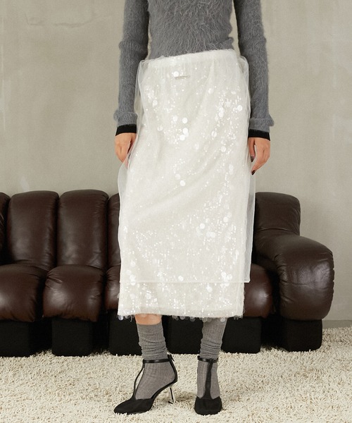 ー Style ー大胆なスパンコールに繊細なチュールを被せたレイヤードデザイン。チュールの軽やかな透け感が、華やかさを引き立てつつ上品に見せてくれる一着。ウエスト全周ゴム仕様でストレスフリーな履き心地。スウェットやスポーティなメンズライクなアイテムと相性◎。ミディ丈なのでブーツやソックス+パンプスのレディな合わせがおすすめ。 ー Fabric ー大ぶりなスパンコールと繊細なチュールを使用し素材コントラストが楽しめるスカート。【PRANK PROJECT/プランクプロジェクト】常識に縛られない洗練された大人の女性に向けて”意外性” と ”品の良さ” をMIXさせた上質なNEW MODE BRAND・商品のお気に入り登録再入荷、残り1点などの通知を受け取ることが出来ます。・ブランドのお気に入り登録新商品や再入荷、ショップのおすすめトピックスなど、いち早くブランドのお得な情報を受け取ることができます。