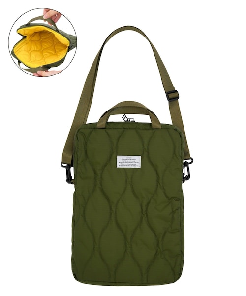 ●ミリタリールックがかっこいいモバイルケースは手持ち・肩掛けの便利な2WAY仕様!●内側の鮮やかな配色とシンプルなロゴプリントが魅力!●中綿キルティングで中身を優しく保護してくれます。●メインの開口部はダブルファスナーなのでどこからでも開けやすいのが嬉しいポイント◎●後ろにはファスナー付きのポケット付きで、コード類などを分けて収納できます。