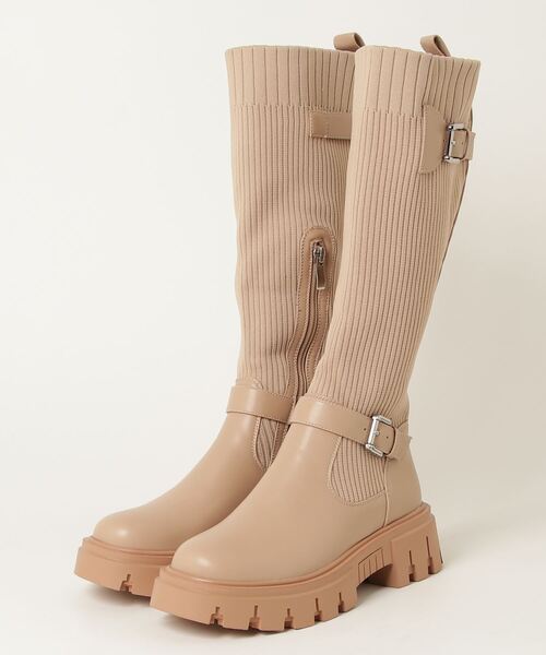 \ソックスブーツ、ロング!/しなやかな合皮と、柔らかなニット素材を組み合わせたロングブーツ。サイドに配した2本のベルトが、足元にほどよいアクセントを添えます。筒部分はニット仕様で、脚にやさしくフィットしながら、動きに合わせて美しく揺れるシルエットに。カジュアルにもフェミニンにも馴染む、秋冬のスタイリングにおすすめの一足です。品番72-8101内側ファスナーありカラー・ブラック・ベージュ素材メイン素材:合成皮革/ニット表記サイズ(あくまでも目安としてお考えください)Sサイズ(サイズ目安【22.0cm】【22.5cm】)Mサイズ(サイズ目安【23.0cm】【23.5cm】)Lサイズ(サイズ目安【23.5cm】【24.0cm】)LLサイズ(サイズ目安【24.0cm】【24.5cm】)【ZOZOTOWNでのお買いものを便利に!】★商品のお気に入り登録★・完売カラーの再入荷通知や、ラスト1点の通知、セールの通知を受け取ることができます。★ブランドのお気に入り登録★・新商品や再入荷など、いち早くブランドのお得な情報を受け取ることができます。※他のキャンペーンにより、期間中に価格が変動する場合があります。※セールは予告なく終了させていただく場合もあります。※ご注文いただいた予約商品のお届け時期の確認は、注文履歴ページより行えます。※他のキャンペーンにより、期間中に価格が変動する場合があります。※セールは予告なく終了させていただく場合もあります。
